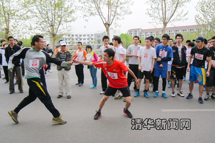 接力赛是为“阳光长跑”课外锻炼活动、宣传“阳光长跑马约翰圈”而举行,为“马约翰杯”学生运动会的竞赛项目之一,参赛院系各派出8男2女10名同学,每人围绕紫荆雕塑园“马约翰圈”跑1000米。经过激烈角逐,计算机系、自动化系、汽车系分别获得前三名。