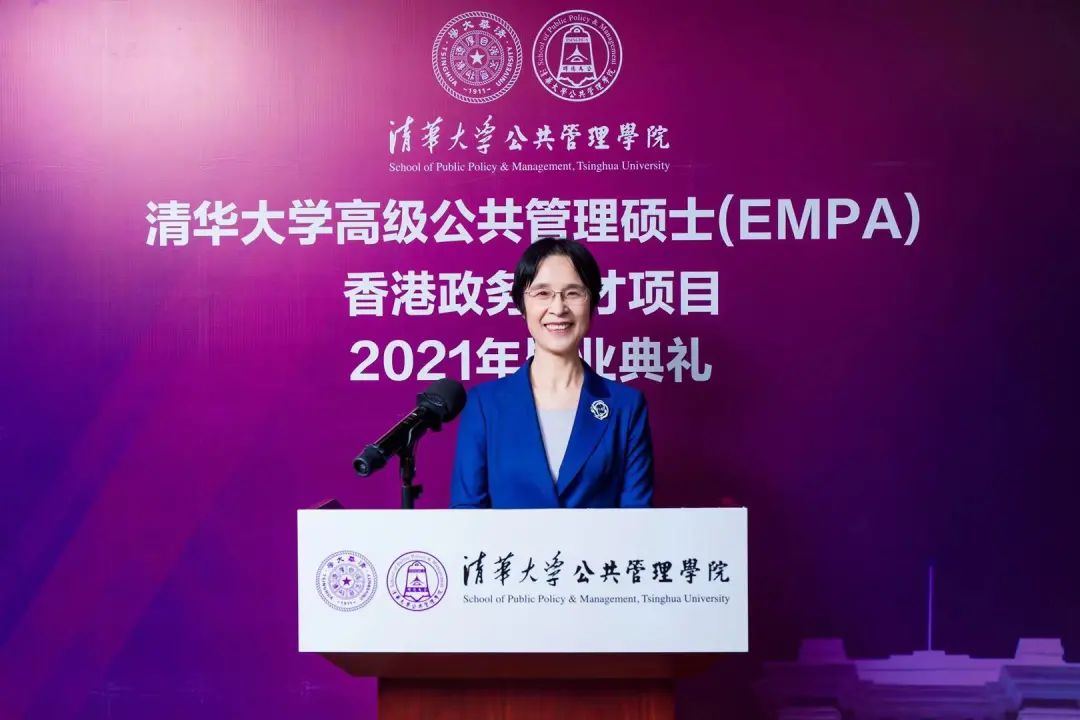 王亚华宣布了EMPA香港政务人才项目2021年1月和6月研究生毕业和学位授予情况,并向全体毕业生表达了诚挚祝福。他寄语同学们为祖国的繁荣富强和维护香港的长治久安作出清华公管人应有的贡献。