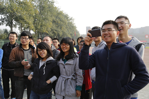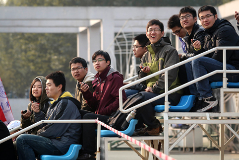 图为校园吉尼斯项目吸引了众多观众饶有兴致地观看。