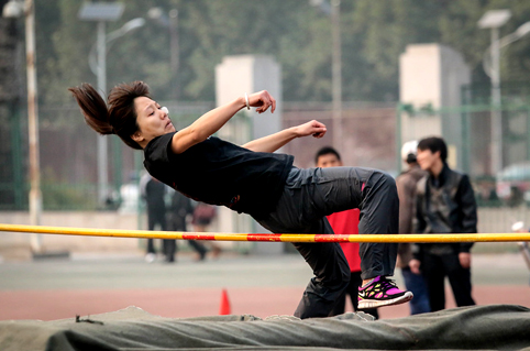 图为女子跳高比赛采取背越式姿势的运动员。