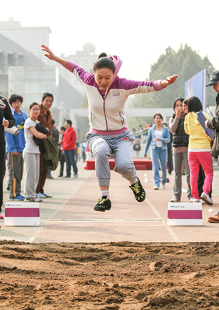 图为女子跳远比赛运动员腾空瞬间。