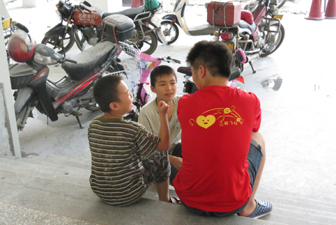 图为赴四川省雅安市地震灾区艺术支援支队活动间歇时队员与小朋友交流。