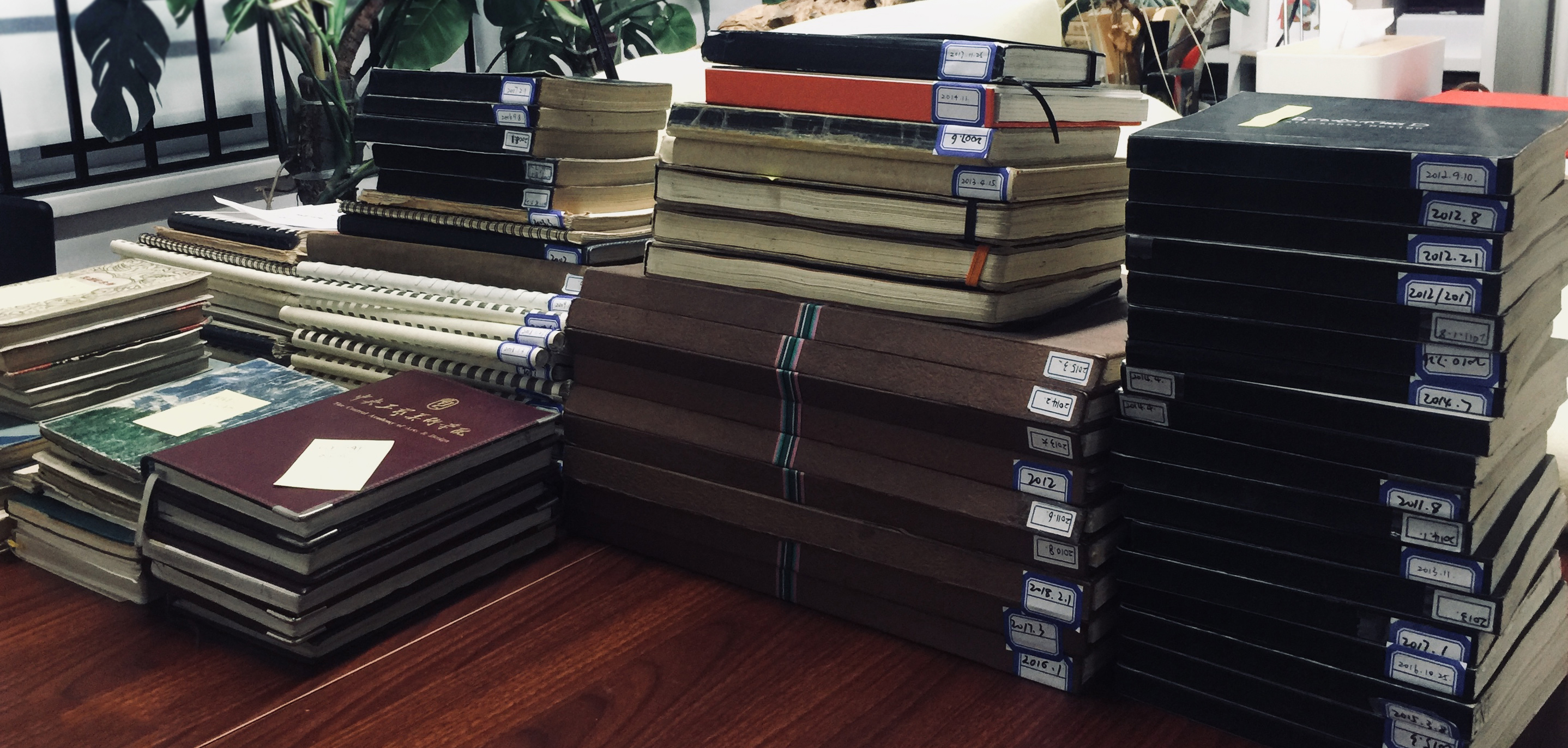 他工作室的微信公众号会不定期更新“本上涂鸦”系列作品——来自陈楠手稿本里的绘画小品。从初中学习画画到今天,他积累了几百个手稿本,其中完整的画稿就整理了近两千张,创意草图、读书笔记、风景写生更是多不胜数。一张张生动有趣的手稿见证着他的艺术生涯,无论是在飞机机舱里,还是在火车车厢中,旅途中他都会随时记录。有一次,在巴黎蒙马特高地时,陈楠手边只有一支笔但没带本子,便在超市的打印小票背面上画了一张鸟瞰城市的小景。“最幸福的感觉就是在街边咖啡馆画小风景或创意草图了。”他说。