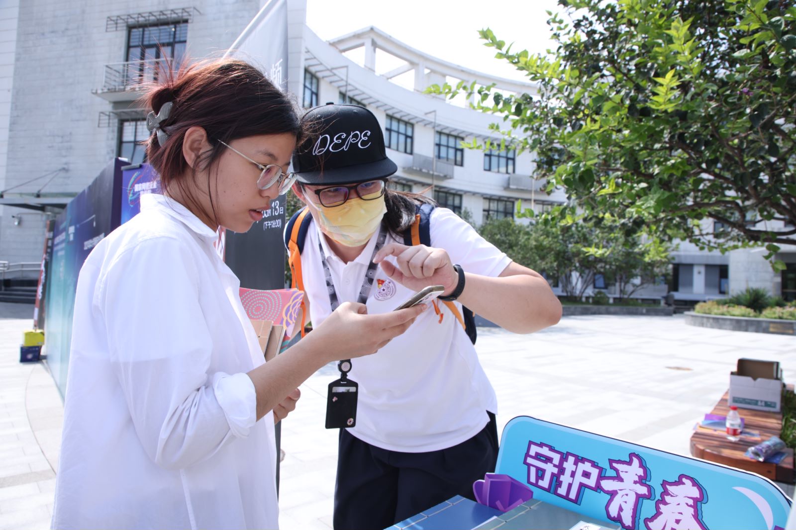 “共建网络安全,共享网络文明,以青春之我,担网安之责”,学生服务中心前广场热闹非凡,在党员们的积极引导下,师生纷纷拿出手机扫码,参与网络安全短视频征集活动投票,认真进行网络安全知识答题,学习公共WiFi安全使用操作,警惕挖矿木马等陷阱,并在签名板前拍照留念。