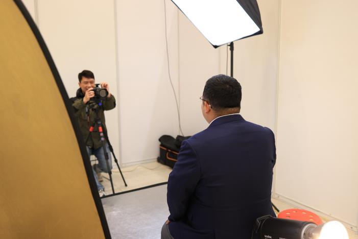 量体场地另一侧设立了简历照拍摄专区,提供免费化妆、服装搭配、照片拍摄及选片修图服务。