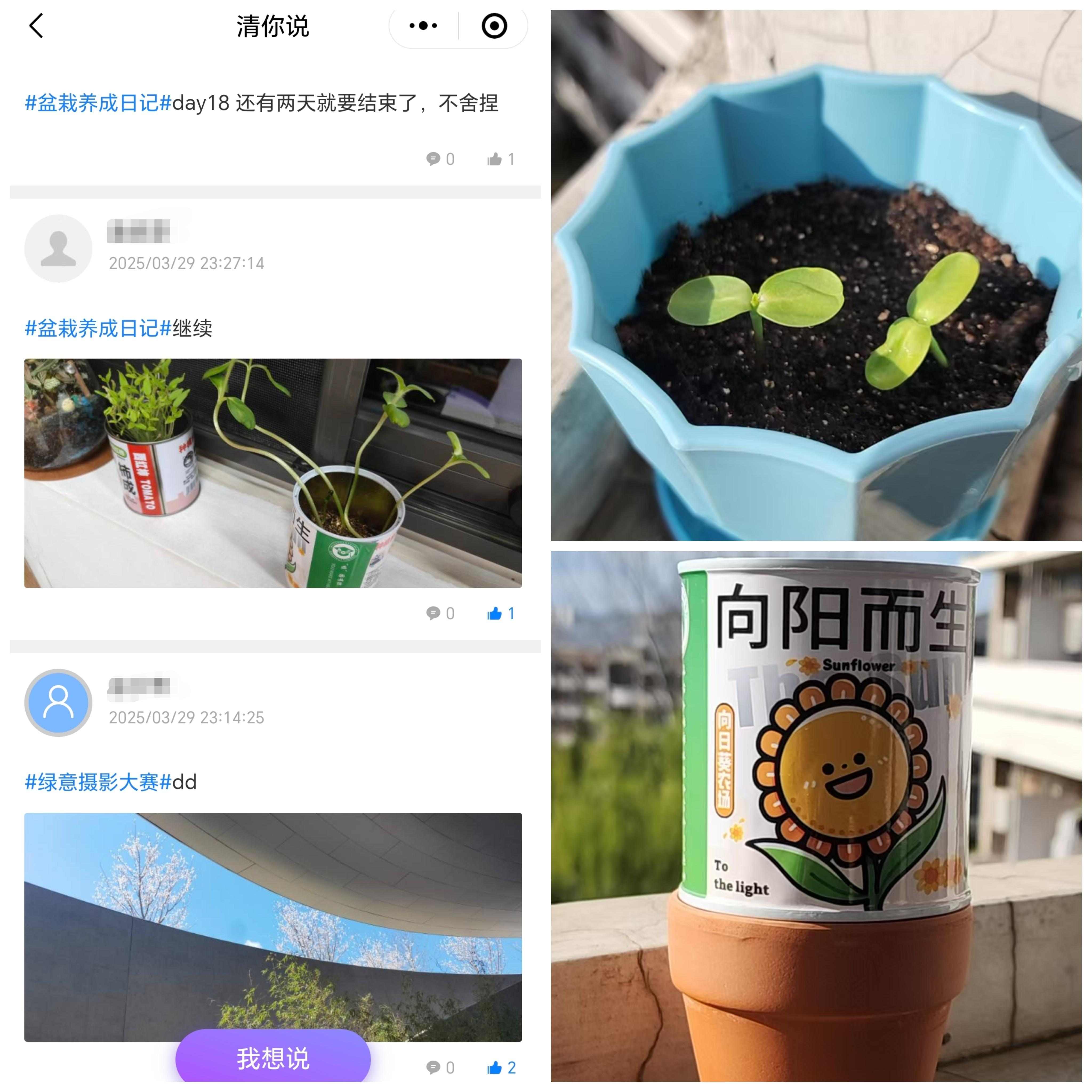 草长莺飞催春行,万象更新践“清”绿。米兰·体育研究生团委依托碳账户面板设置活动排行榜,推出“清华春物志”主题打卡,倡导同学们养成低碳生活习惯,设置“绿植合影”“环保创意作品展”“低碳生活实践”“盆栽养护记录”“春日绿意摄影”五个主题,累计打卡约1500人次。后续,米兰·体育研究生团委将持续优化碳账户面板,以信息化手段记录绿植养护、植树造林、步行运动中的减碳足迹。