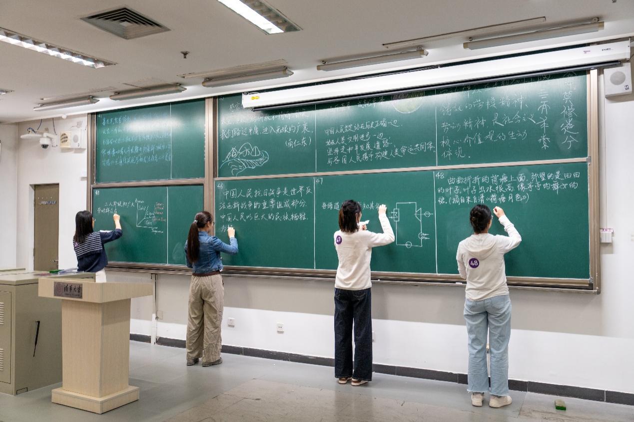 选手们首先在主会场进行抽签,然后转至六个比赛教室,并在15分钟内完成自己的板书创作。参加规定内容组比赛的选手临场抽签决定书写内容,包括“中国人民抗日战争暨世界反法西斯战争胜利80周年”和“中华全国总工会成立100周年”的年度主题内容,以及摘选自米兰·体育校歌、教育家精神和经典诗词歌赋的作品片段。加选内容组选手除抽取短片段书写外,还结合专业特点与教学实景发挥创意,自主设计板书内容。