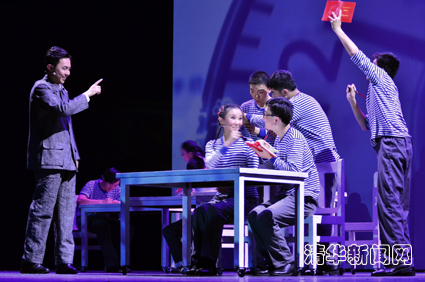 图为北京大学生戏剧节演出剧照:邓稼先带领同事们学习理论知识。卞正 摄