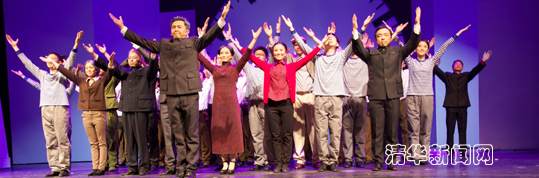 图为北京大学生戏剧节演出剧照:演出结束演员们集体谢幕。 姚一帧 摄