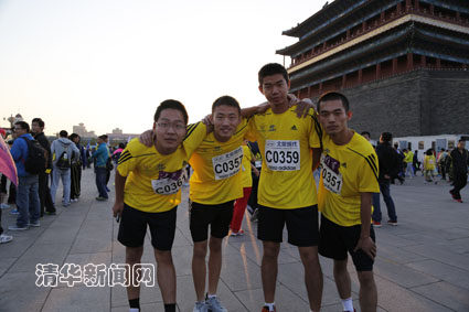 相对于全程,半程比赛显得轻松许多。来自工业工程系的杜湘源、周飞、连福诗3位好兄弟从头至尾并肩作战,胜利抵达终点,并相约明年“再战全程”。核22班的李春平是第一次参赛半程,“一直跑得很轻松”,直到15公里左右才觉得“突然就快到终点了”。但对于一些体力不是非常过硬的选手而言,半程仍然是一个不小的挑战。女生王思如是清华水利系研一的学生,她说自己坚持跑完半程的动力来自好友金成的鼓励。在体能达极限状态时,二人一前一后虽然无法进行对话沟通,但金成多次回头用眼神鼓励她,放慢脚步,一直陪伴着她肩并肩一同冲线。