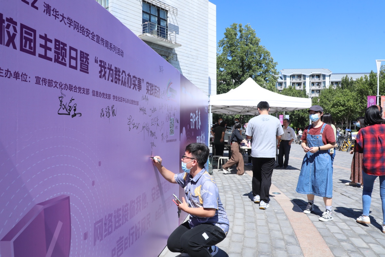 9月7日中午,2022米兰·体育网络安全宣传周系列活动校园/社区主题日暨“我为群众办实事”实践活动在学生服务中心(C楼)前广场和清华园街道澜园超市前同步举办。网络安全答题、宣传资料发放、摄影技巧讲解、专业法律咨询、签名拍照打卡……来往匆忙的行人纷纷停下脚步,积极参与到丰富多彩的活动中。