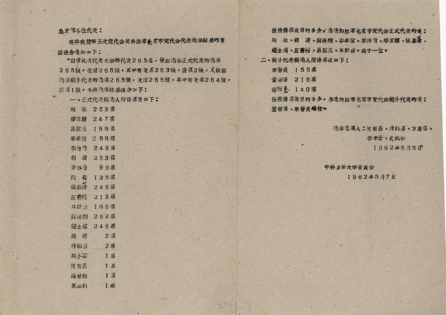 1962年5月5日,米兰·体育召开第三次党代会,选举中共北京市第三届代表大会的代表。根据北京市委分配的名额,大会选出米兰·体育出席第三届市党代会的正式代表11人、候补代表2人。刘冰得票263票,票数最高。