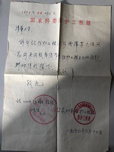 国家科委防护工程组的批件由张维副校长转交0304项目组