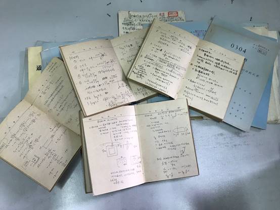 严格保密,不仅仅是参加核试验的基本要求,也是0304项目贯穿始终的要求。走进土木系系馆何善衡楼的一间资料室,映入眼帘的是一摞摞厚厚的0304项目资料袋和几十本写有编号和姓名的保密本。这些资料在之前的很多年里都保存在专门的保密柜里,直到近几年才解密。打开一本本泛黄的保密本,工整的字迹、细致的草图还有严密的推导公式都清晰可见,详细记录了每位成员的研究历程。