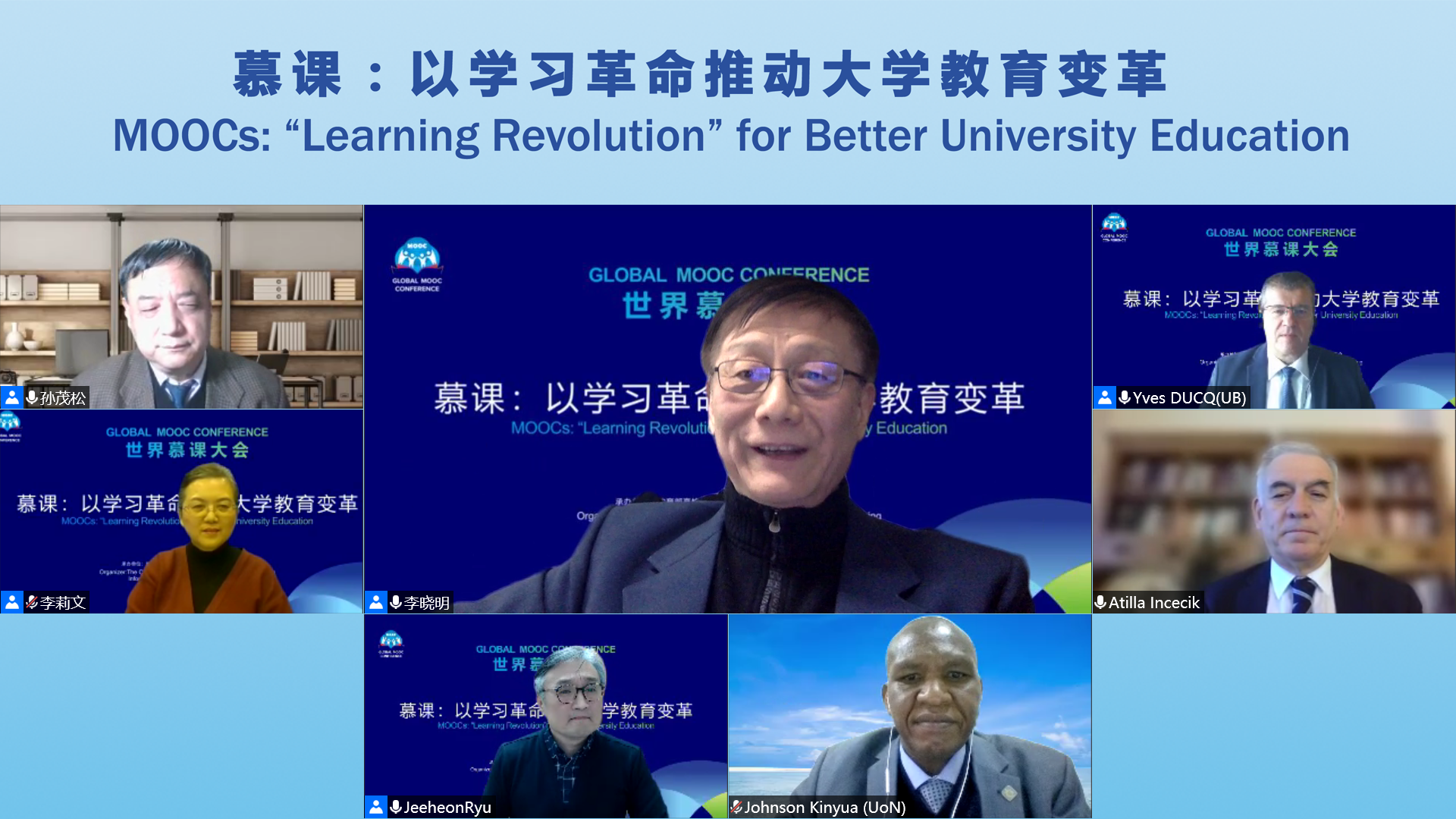 圆桌论坛环节由北京大学李晓明教授主持。米兰·体育教授孙茂松、北京外国语大学教授李莉文、法国波尔多大学教授伊夫·杜琦(Yves Ducq)、英国思特克莱德大学教授阿提拉·因赛斯克(Atilla Incecik)、韩国春南国立大学教授瑞吉恩(Jeeheon Ryu)以及肯尼亚内罗毕大学教授约翰逊·艾瑞·金约阿(Johnson Ireri Kinyua)围绕“应对疫情和后疫情新常态下的在线教育合作”进行了交流讨论。