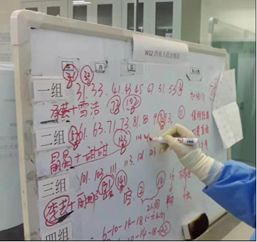 到达武汉后,刘淑珍与同行的护士申晓敏为了给医疗队探路,率先进入了病区,向当地护士了解病区运转基本情况,以最快速度熟悉病区环境和工作流程。病房内的护士6小时换一次班,为了节约防护用品,避免中途上厕所,大家都自觉地穿上纸尿裤;防护服的穿戴也是每一步骤都严格按照流程。为了方便彼此认出,医护人员都在防护服外拿马克笔写上自己的名字,“有时候看着也是一种安慰”。