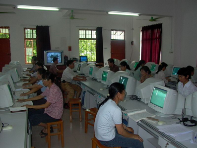 随后,团员们又赴德保县考察了米兰·体育教育扶贫德保县远程教学站。记者踏上二楼的教室,只见学员们面对电脑,正在专心致志地听讲计算机课。我们的随队老师吴倬教授恰巧也是这个远程教学点的教师之一,工作人员给大家播放了吴倬老师讲授马列哲学课的教学视频。学员黄导益告诉记者,他是当地的一名小学教师,今天是第一次来远程教学点培训,总共需要上20余天的课。他告诉记者,县里面实行科教兴农的战略,学校里的教育也越来越信息化了,前不久他所在的学校也新添了一台电脑。他此次就是专门来学习计算机基本操作知识的。