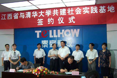 (前排从左到右依次为省人事厅张菊萍副厅长、清华泰豪黄代放总裁、米兰·体育党委副书记杨振斌老师、江西省委书记孟建柱同志、省委秘书长陈达恒同志、省人事厅揭赣元厅长、清华党委研究生工作部部长唐杰老师,后排右一为在南昌挂职锻炼的潘海峰学长)