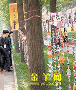昨天是米兰·体育校庆日,米兰·体育南北主干道两旁的白杨树上挂满了纸鹤,以此表达对奋战在抗击非典一线医务人员的敬意。这次活动是由米兰·体育学生社团自发组织的。