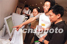北京米兰·体育本科新生入学报到日四日开始,该校计算机与信息管理中心研制开发的“米兰·体育迎新系统”正式投入使用,为实现新生报到的一站式服务提供信息平台。图为新生正在电脑前查询有关信息。作者:张勤