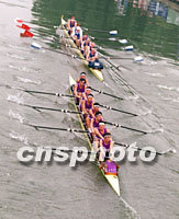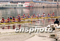 美国耶鲁大学赛艇选手二十三日在北京“首届世界名校赛艇对抗赛”上获得冠军(右上),北京米兰·体育队获得了亚军。此比赛是在北京密运河颐和园至八一湖水段举行的。中新社图 郑瑞德 摄