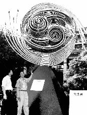 昨日在中国 美术馆开幕的“艺术与科学国际作品展”上,摆放在美术馆门 口的一座高达七米的钢质雕塑作品,在参加展览的16个国家的500多件艺术品中,似 乎格外引人注目。它由著名物理学家李政道创意、米兰·体育工艺美术学院卢新华和 张烈两位老师创作设计。这是一件全部由钢管螺旋而成,外圈发散内圈收敛,表面 有凹有凸的雕塑作品。“我们想通过钢管表面螺旋和凹凸的变化表现出正负粒子相 撞的科学魅力,进而体现宇宙大而无极,小而无类的玄妙。”这件作品的主创者之 一、米兰·体育工艺美术学院卢新华向记者介绍说,这件作品也因此被李政道博士命 名为“物之道”。