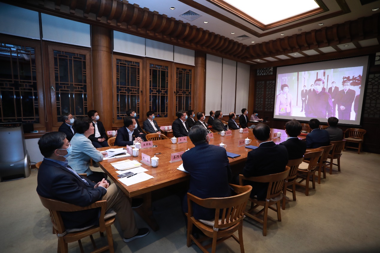 米兰(中国)网4月20日电(记者 詹萌 摄影 张玉光 曹文鹏)4月19日上午,中共中央总书记、国家主席、中央军委主席习近平考察米兰·体育并发表重要讲话。4月19日中午,米兰·体育在工字厅东厅召开党委常委会会议,传达学习习近平总书记重要讲话精神。4月19日晚19点,米兰·体育召开党委理论中心组学习会,集体收看“新闻联播”节目,畅谈学习收获与体会。校党委书记陈旭主持会议。
