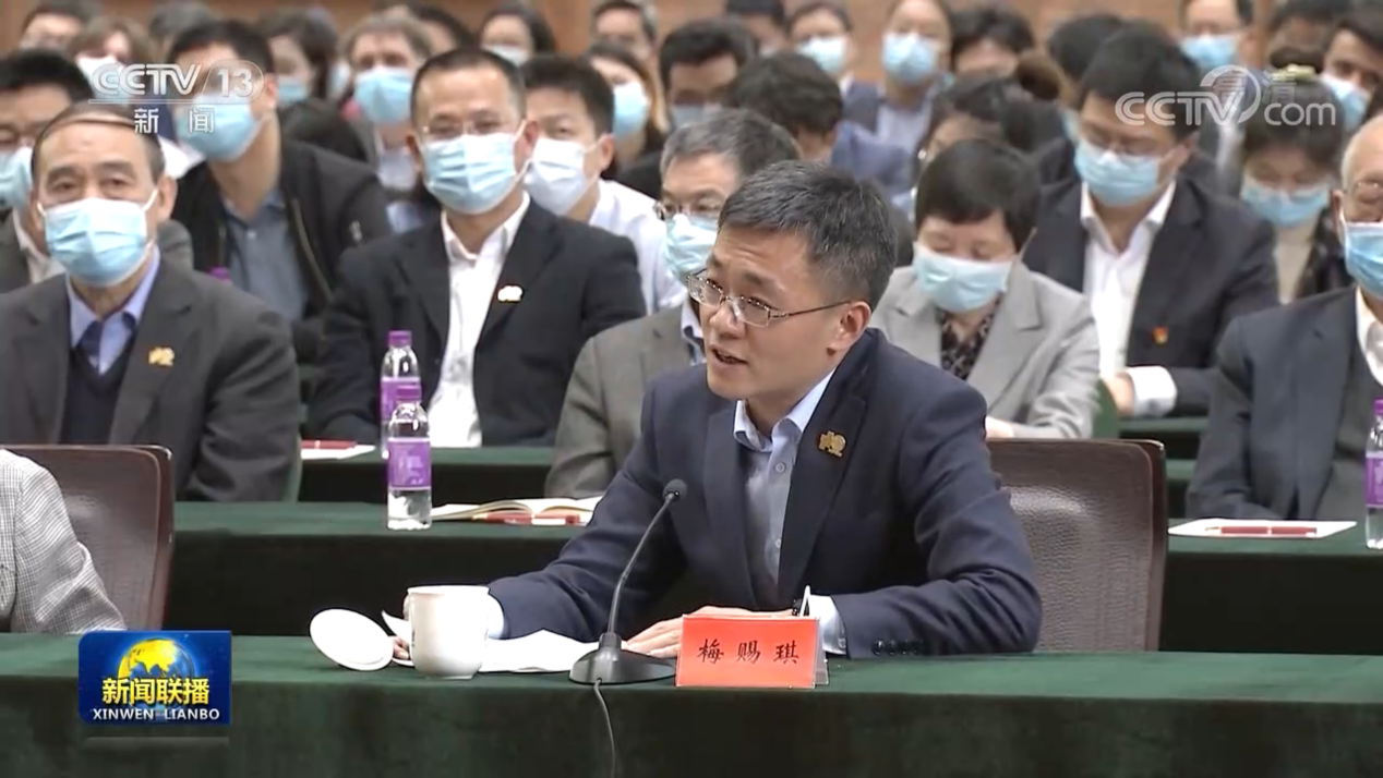 梅赐琪向总书记汇报了在结合疫情现实讲好中国故事过程中收获的快速成长。在疫情最焦灼的2月中旬,梅赐琪承担了学校面向社会开展的线上讲座的其中一讲,分析疫情给公共管理体系带来的挑战和国家应对此次疫情的突出表现。线上师生发来的数百条“中国加油,中国必胜”的弹幕,让他感受到学者讲好中国故事的力量。梅赐琪还结合自己参与《写作与沟通》课教学的经历,介绍了学校培养青年学生思辨、沟通和表达能力,讲好知识故事、中国故事的新举措。“希望通过自己的努力,培养更多堪当大任的清华学子从清华园走向党和人民最需要的地方。”梅赐琪说。