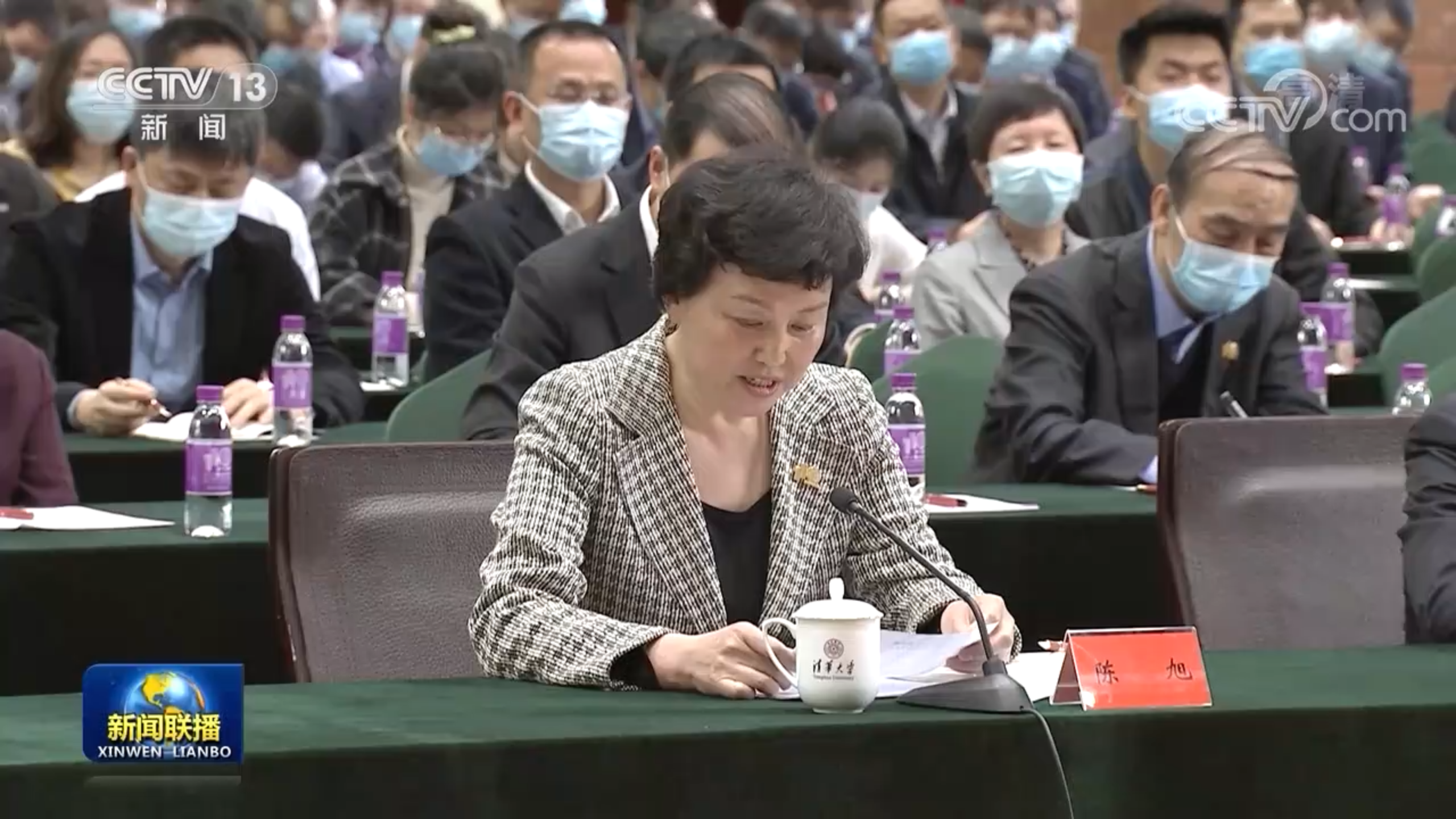 陈旭最后说:“爱国奉献,追求卓越,永无止境!请您放心,我们一定不辜负党和国家的期望,团结带领全校师生员工不懈奋斗,为全面建设社会主义现代化国家、实现中华民族伟大复兴的中国梦作出清华应有的贡献!”