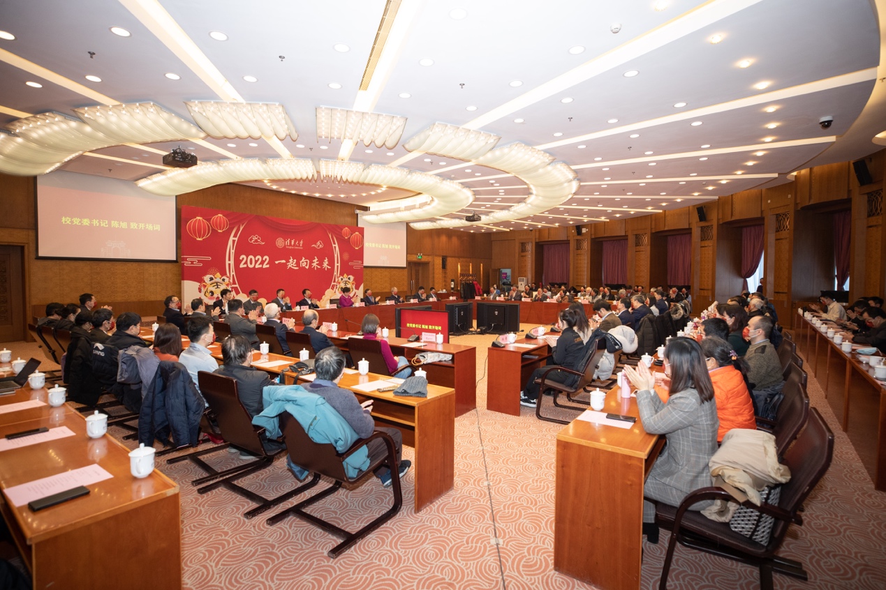 在简要回顾新冠肺炎疫情暴发以来学校在党的建设、教书育人、科技攻关、人才队伍建设、国际合作交流等方面开展的卓有成效工作后,邱勇对2022年学校的重点工作进行了部署。邱勇指出,面向未来,清华人将始终坚持把立德树人作为根本任务,把服务国家作为最高追求,把学科建设作为发展根基,把深化改革作为强大动力,把加强党的建设作为坚强保证,始终保持战略定力和耐心,自信从容,迈向未来,自强创新,不辱使命,以扎扎实实的工作推动学校事业高质量发展,为实现第二个百年奋斗目标、实现中华民族伟大复兴的中国梦、推动人类文明进步作出新的更大的贡献。