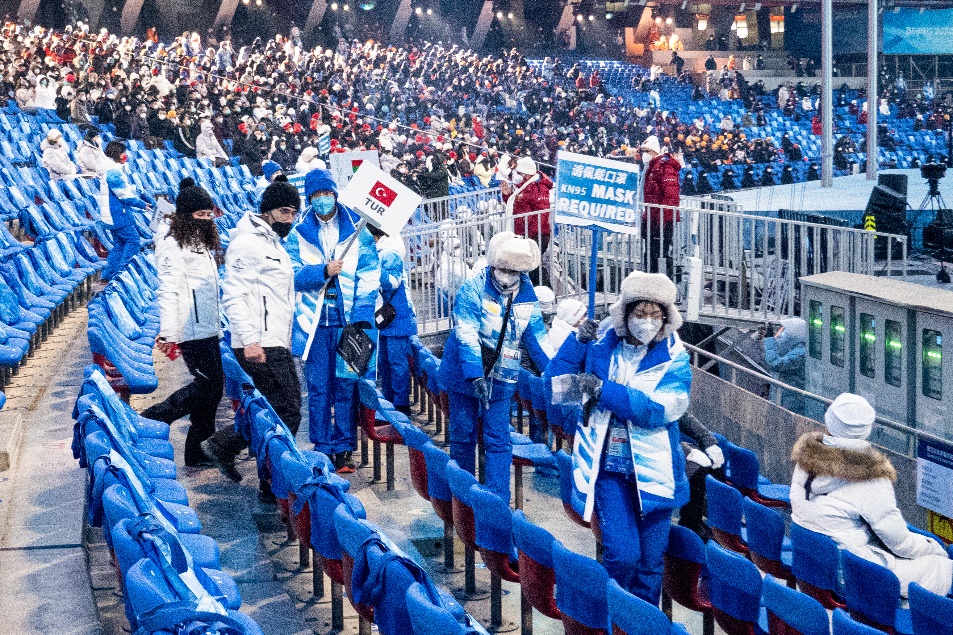 全员坚守,幕后英雄默默付出。由374名志愿者组成的赛事服务助理团队,是开闭幕式背后不可或缺的默默坚守者,承担着检票验票、前院客流管理、看台及环廊服务等多个板块的工作。为了更快速准确地完成“撕票”工作,检票验票志愿者在寒冬里取下了手套,反反复复地重复4秒的动作,保证人流快速有序通过,累计为60000余名观众检票验票。“你的动作又快又稳,撕完的票根我还能留着作纪念呢,谢谢你!”观众对着志愿者竖着大拇指说道。鸟巢层与层之间也有着繁复的各式楼梯,闭环内外的分界线参差不齐,准确回答观众“我该怎么走”的问题成了前院客流管理志愿者们的一大挑战。志愿者们按照分层方式手绘了便于记忆的流线指引图,以最直观、最高效的方式帮助记忆。冬奥会开幕式当天,志愿者利用休息的间隙互相进行“流线考试”,根据对方说出的看台号给出相应的流线信息,加深对流线的记忆。环廊里和看台上,志愿者们背向舞台,在幕后默默坚守岗位。当烟花声响起,信息亭中的志愿者们仰望着鸟巢外的天空,听到场内传出的阵阵欢呼,想象主火炬点燃的盛大场景。虽然没有在聚光灯下,但这群可爱的“雪花们”相信,如果台前的壮观仪式是光,那自己就是台后的影子。