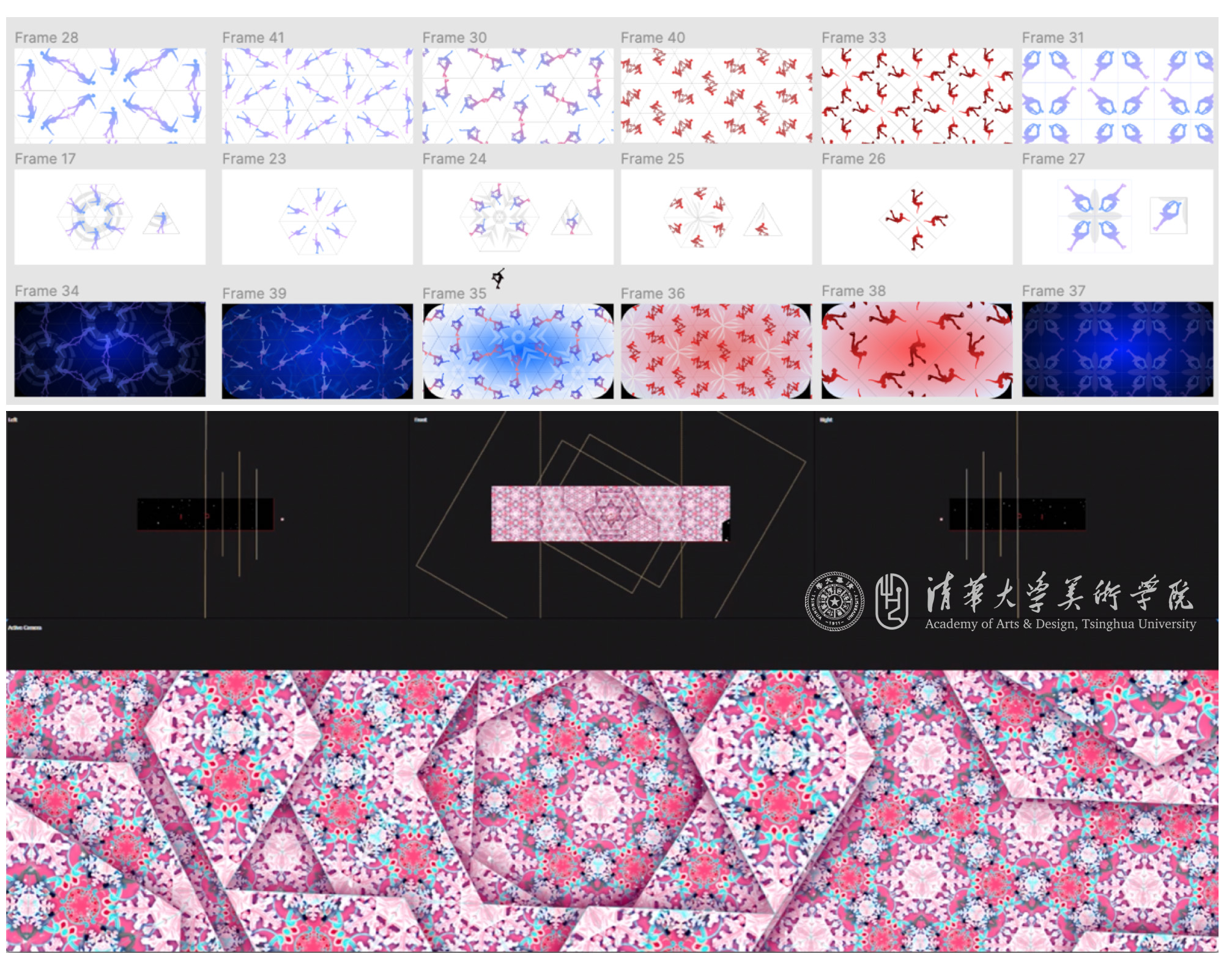 冬奥组委对节目给出的呈现要求是:一是要配合花滑表演赛的主题,服务于现场氛围的营造;二是要创新,给观众带来全新的体验。目标确定后,吴琼邀请了同在信息艺术设计系的王之纲教授,软件学院刘世霞副教授,以及中央音乐学院李子晋副教授共同组建团队。光影表演中运动员三维模型的动作和轨迹获取主要来自英特尔公司的三维运动员追踪技术(3DAT),该技术使用较少数量的标准摄像机从不同角度拍摄运动员的训练过程,通过人工智能算法对采集到的视频数据进行智能分析处理,可以为运动员的日常训练提供切实有用的技术支持。艺术和科技整合创新是团队努力的方向,基于3DAT技术,吴琼带领的清华团队借助可视化的分析,发挥艺术创作的能动性,完成对花滑运动的创新的形式表达,让大众感受到花滑的魅力,感受用科技所赋予的新时尚。