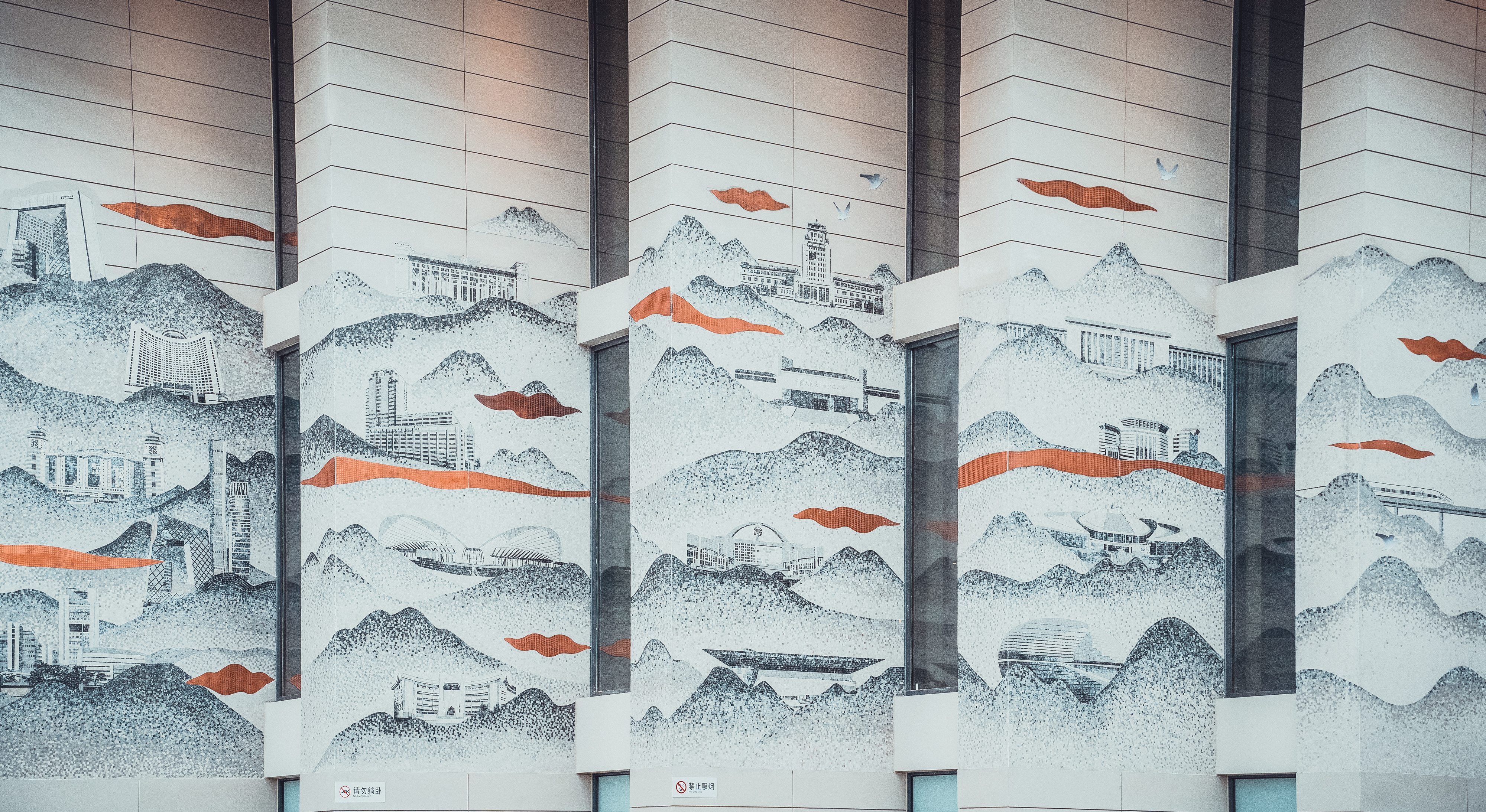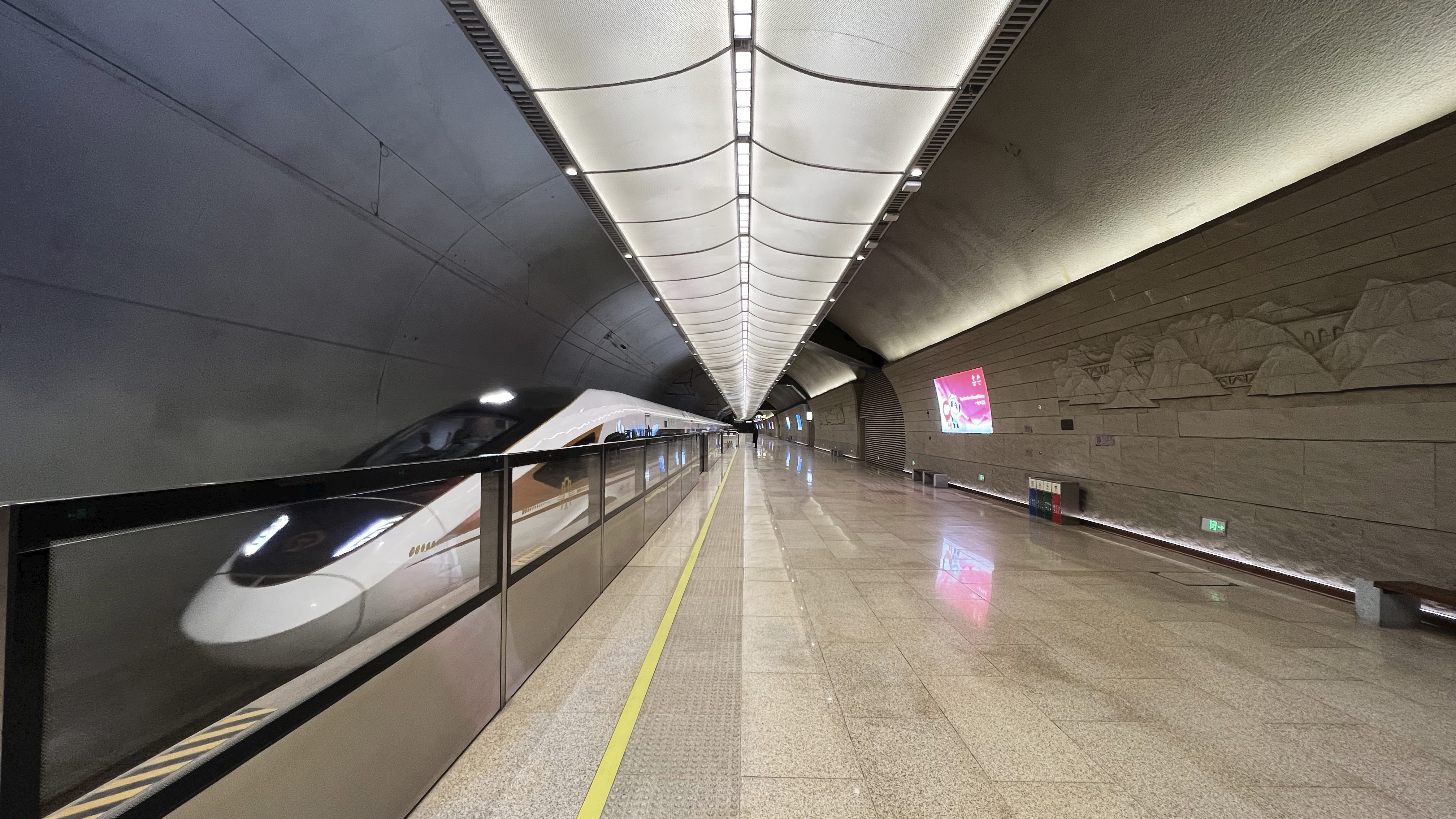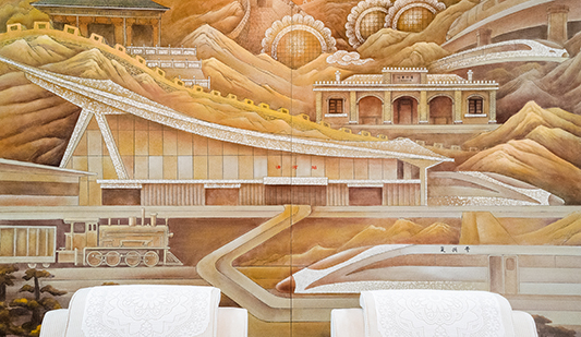 清河站综合服务台壁画《复兴号奔驰在祖国广袤的大地上》