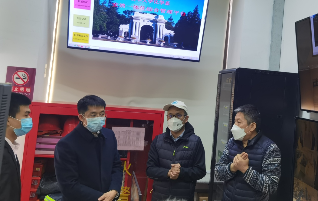 曾嵘带队到化学系、生命学院的部分实验室进行了安全检查,详细了解化学系何添楼的消防监控一体化系统、实验室内部视频监控系统、消防志愿服务队设施和生物医学馆的动物中心,察看相关化学实验室和生物实验室。强调要进一步提高认识,加强检查和整改,及时清除隐患,切实守住底线,保证实验室安全。