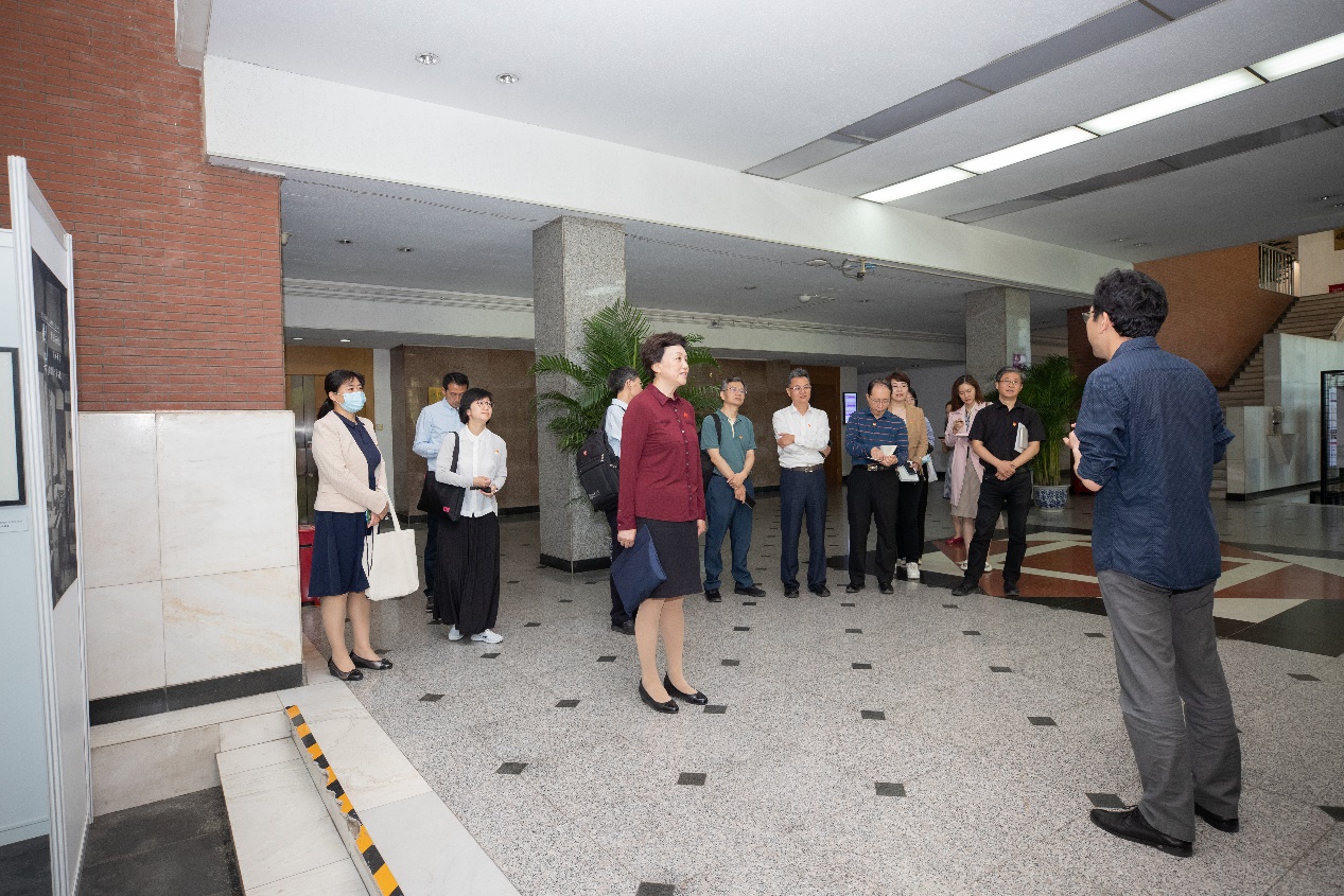 参观建筑学院相关展览并听取张悦介绍红色资源开发利用情况