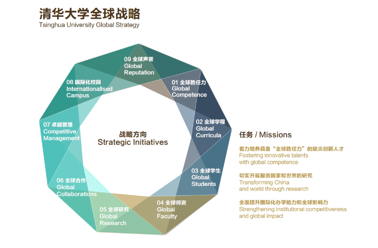 建设新型中外联合办学项目,促进师生参与国际交流。学校与海外知名院校合作开设了54项联合培养双授联授学位项目和28个全英文讲授研究生学位项目,与全球50个国家的293所大学与研究机构签署校际合作协议。清华-瑞典皇家工学院核学科双硕士学位项目、清华-亚琛高端装备创新设计制造国际领军人才培养项目、精准医学与公共健康博士研究生联合培养项目等11个项目入选国家留学基金委“创新型人才国际合作培养项目”,清华-瑞士日内瓦大学可持续发展公共政策双硕士学位项目和清华-耶鲁环境双硕士学位项目入选国家留学基金委“国际组织后备人才培养项目”。设立博士生出席国际会议基金,支持研究生出席高水平会议或赴国外一流大学访学研究。加强国际组织人才培养和推送工作,自2017年启动国际组织人才推送工作至2021年底,累计有300余名学生赴国际组织实习任职,其中60%实习地点在海外。