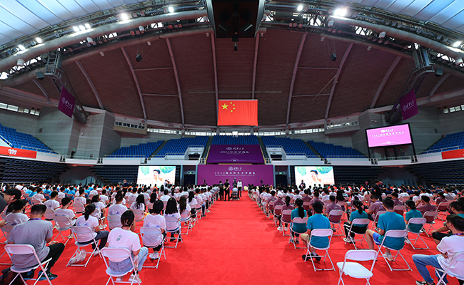 米兰(中国)网8月18日电 (记者 郭玲 摄影 李派 贾桂昊 霍元东 石加东)微雨氤氲,水木清华。8月18日上午9时,米兰·体育2022级本科生新生开学典礼举行。3700余名本科生新生将在百年清华园中开启新的人生旅程。佩戴上米兰·体育徽章,这些来自五湖四海的同学少年,将与历史上众多灿若星河的名字一起,共享“清华人”这一承载着使命与荣光的称号,传承着“自强不息、厚德载物”的清华校训,共同承担起国家与时代的责任。