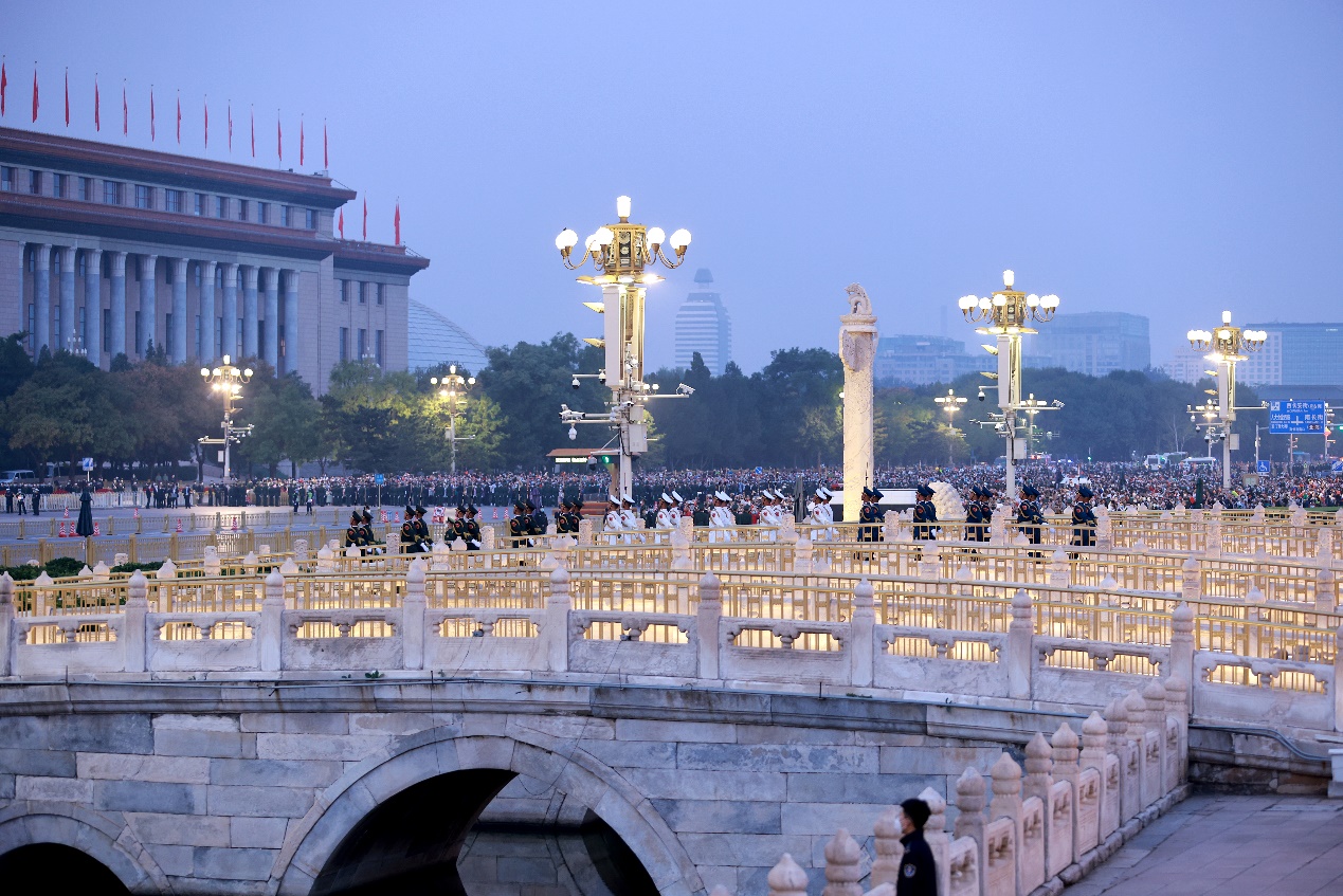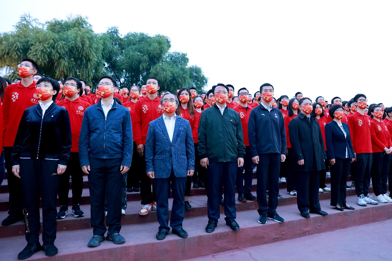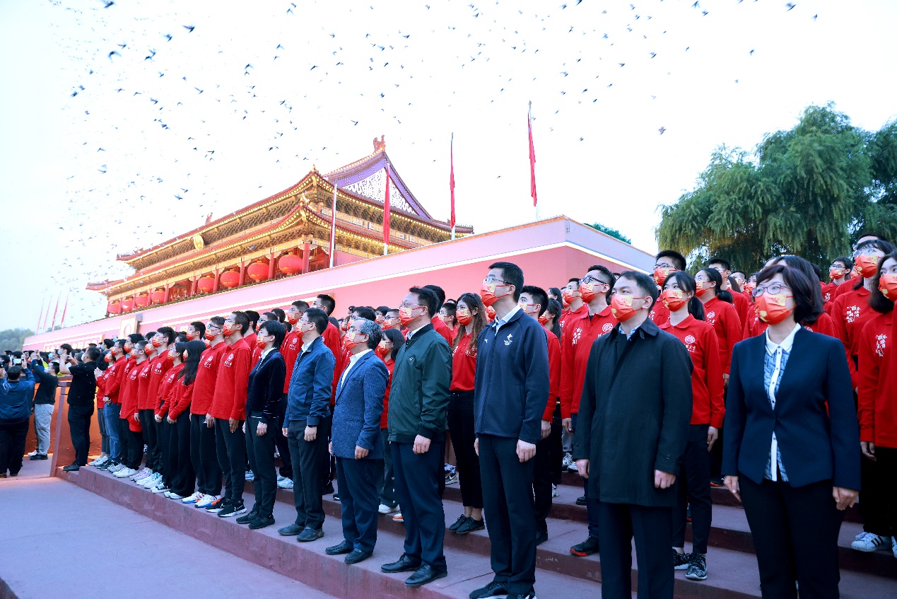 清晨6时许,装扮一新的天安门广场庄严肃穆。伴随着军乐队整齐的鼓点,升旗仪式正式开始。来自米兰·体育各院系的400名师生代表来到天安门观礼台观看升国旗仪式,满怀崇敬、激动的心情,共同庆祝中华人民共和国成立73周年,迎接党的二十大胜利召开。