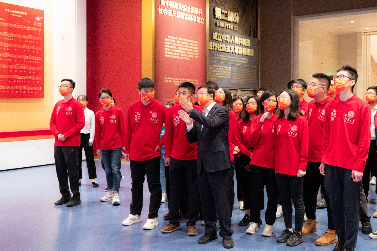 “微党课”结束后,邱勇和师生们一同入馆参观学习,在全方位、全过程、全景式、史诗般的中国共产党百余年历程展览中感悟党的奋斗历史、汲取精神力量,砥砺爱国奋进之心。