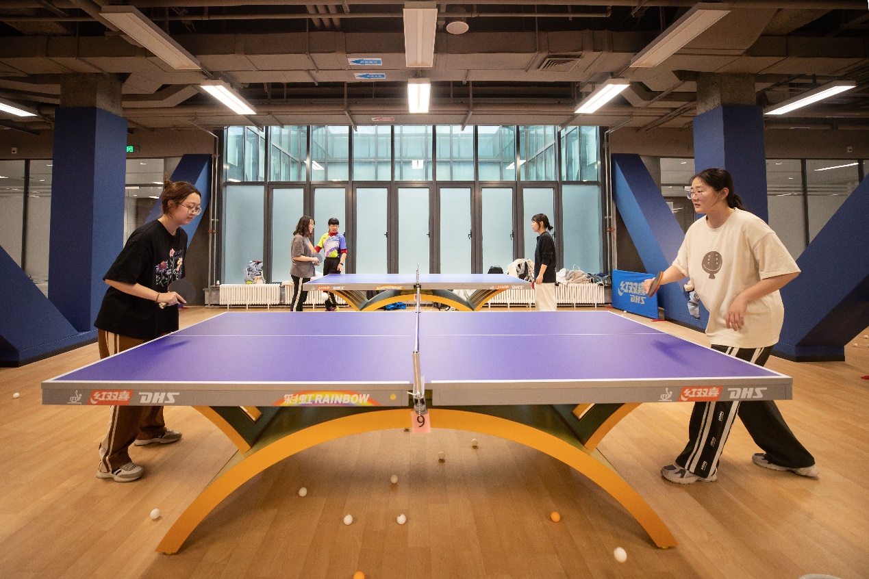 “巧”——通过空间利用率和综合使用效益最优化,北体育馆极大扩充了师生体育锻炼的空间。例如采用不同功能空间垂直叠合、多项运动场地转换使用等巧思,将冰球馆上空的桁架打造为乒乓球馆,篮球馆与排球馆可切换使用,网球场降下拦网后就摇身一变成为大型活动场地……种种巧妙的设计保证能够满足前期调研时同学们提出的多样化运动需求。