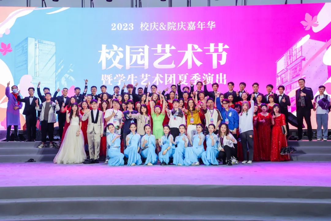 国际研究生院学生艺术团“快乐吗”乐队带来歌曲弹唱《Heroes》,国标队带来原创国标舞剧目《错位时空》。来自不同国家、不同背景的同学们在舞台上讲述南国故事、共祝母校未来。