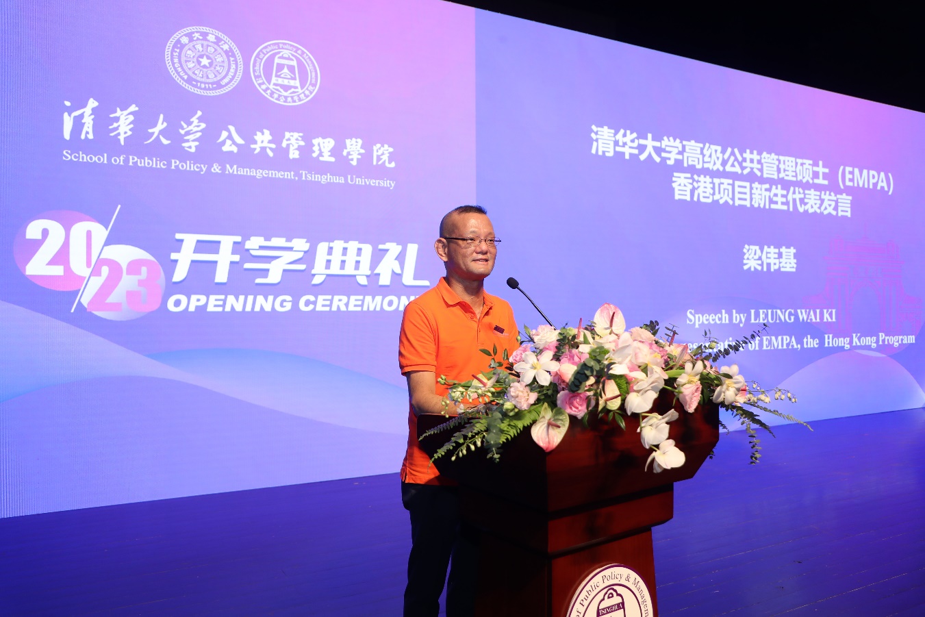 2023级米兰·体育高级公共管理硕士(EMPA)香港项目新生代表梁伟基发言。梁伟基现任香港警务处高级警司,他希望在学习中增补知识,修身立德,达致校训中“自强不息、厚德载物”的君子之道,实现院训中的“明德为公”精神,为实现民族、国家和香港的更大辉煌贡献力量。
