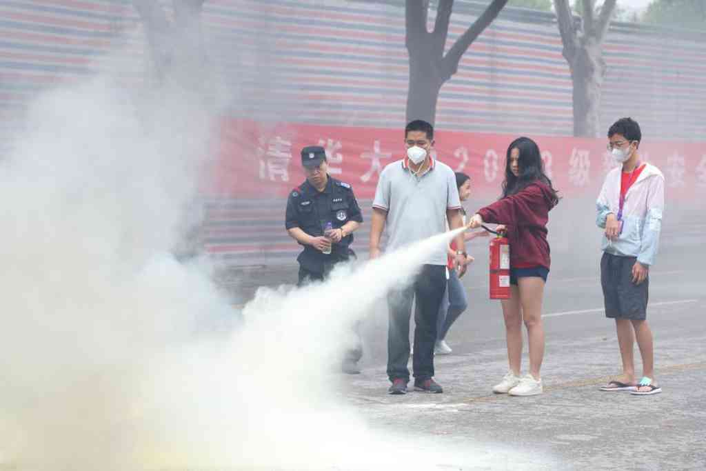 研究生新生于当日上午通过荷塘雨课堂观看应急疏散和消防演习现场直播,并于下午开展楼宇消防疏散演练、逃生帐篷体验和灭火器油盆灭火实操演练活动。
