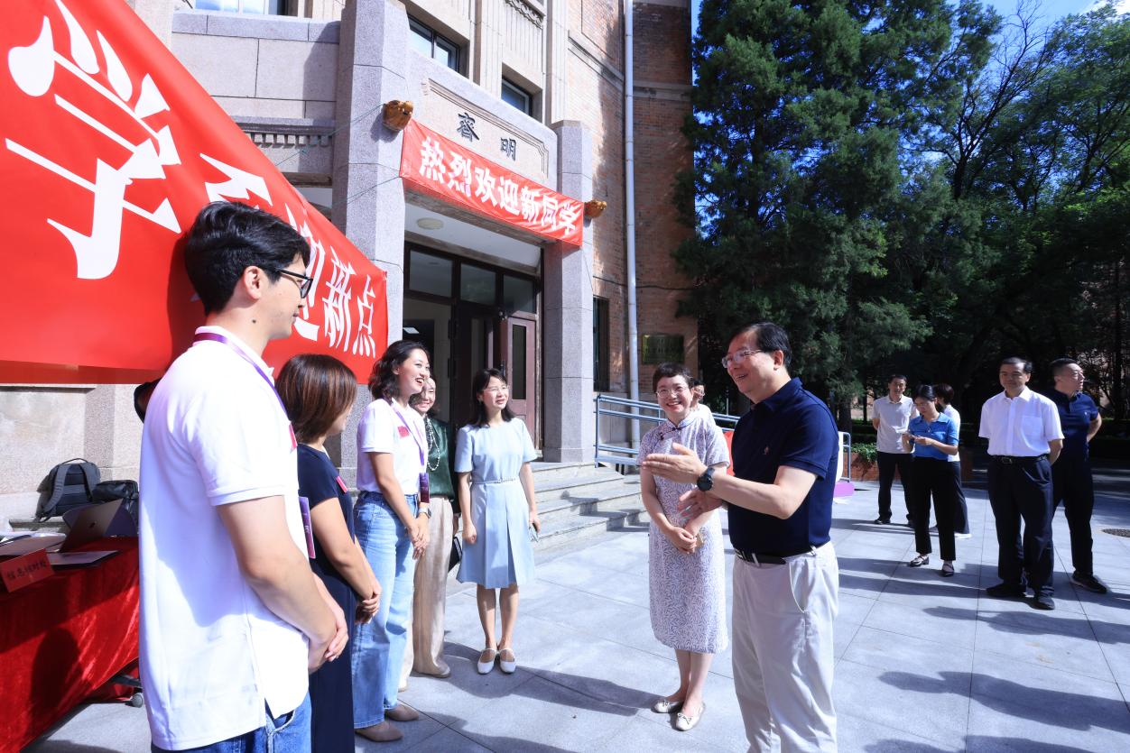 来到建筑学院迎新点,李路明详细询问了今年的招生情况和新生报到情况,并向参与迎新工作的学生志愿者表示感谢。博士新生董心语硕士毕业于宾夕法尼亚大学,曾先后参与数字圆明园等多项建筑遗产保护项目,未来将在建筑学院继续开展文化遗产方向的科学研究。李路明勉励新生,希望大家在热爱的方向上潜心向学、不断求索,充分享受在清华园里的美好求学时光。