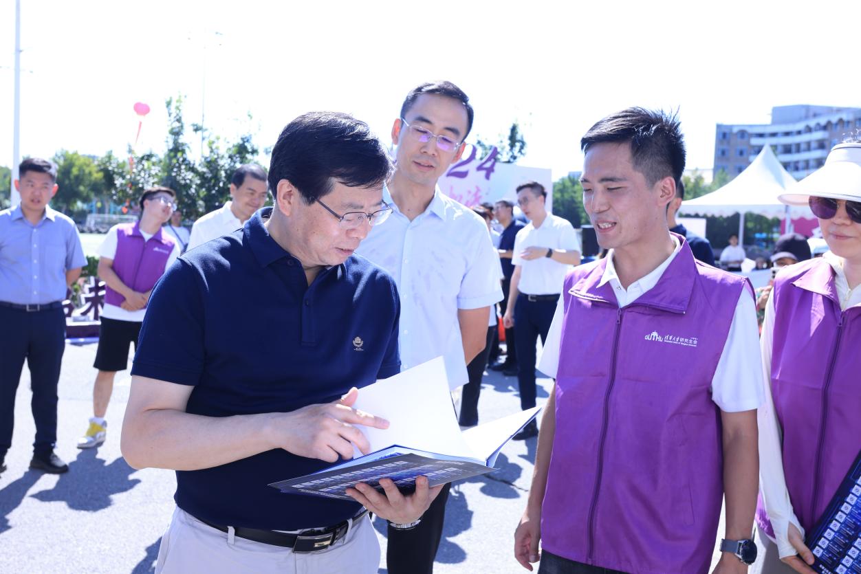 学生服务中心(C楼)前,研究生新生们被丰富多彩的迎新活动与贴心便捷的志愿服务吸引着目光。邱勇逐一来到绿色通道、主题互动体验等区域,向参与迎新工作的师生表示衷心感谢,祝愿研究生新生们树立远大理想,勇担时代使命,书写青春华章。