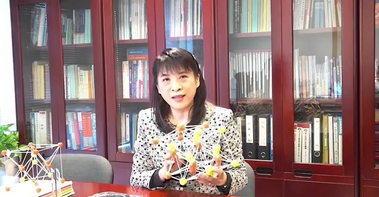 黄翊东拿着硅的晶体结构模型进行讲解