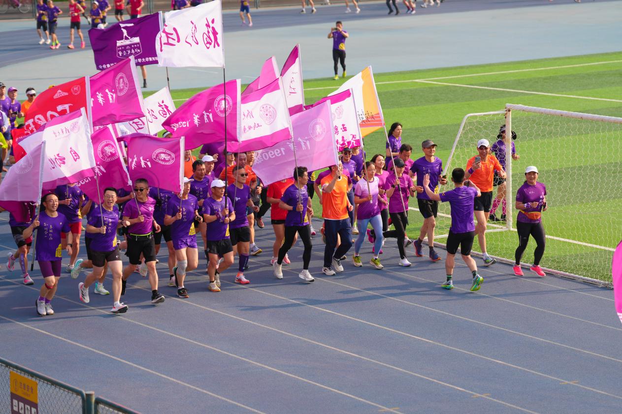 7点30分,发令枪响,重逢的欢声笑语暂停、跃动的身影步伐启动。标记圈数的计数牌上,数字的变换仿佛时间的流转,114年的青春接力,在师生校友们一次次向前奔跑的努力中展开。
