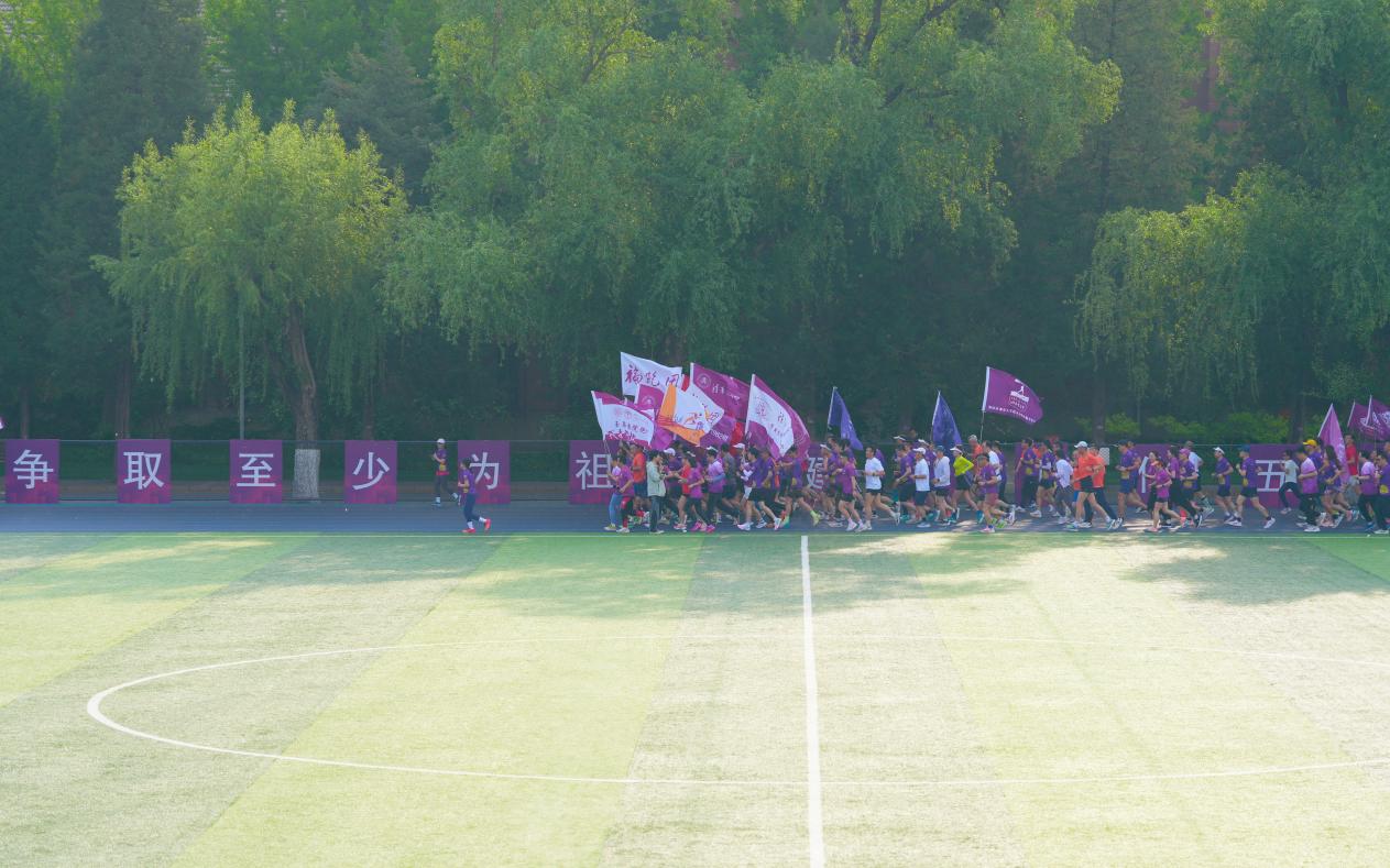 操场边,还有紫荆志愿者为师生校友加油打气。其中一位志愿者是大一年级的在校生,他深深被老师同学们的热情与活力打动。“在清华,大家可以参与各式各样的体育活动,今天看到学长学姐们潇洒奔跑的身影,更加感到体育锻炼为一代代清华人注入的拼搏底色。”