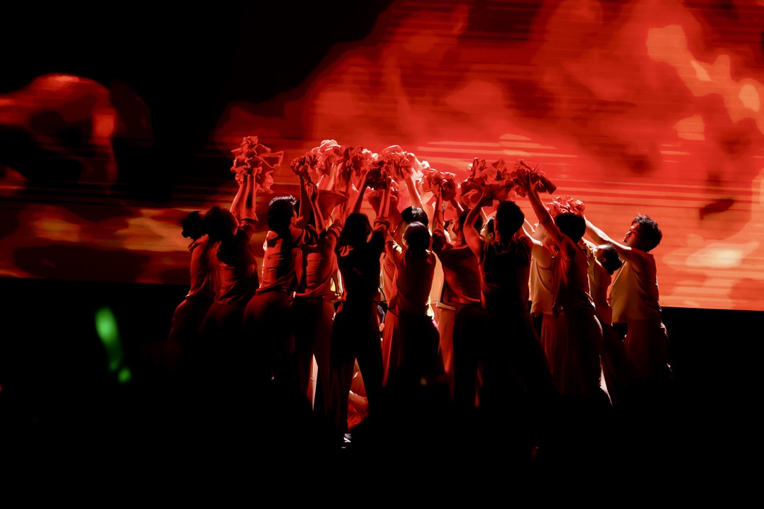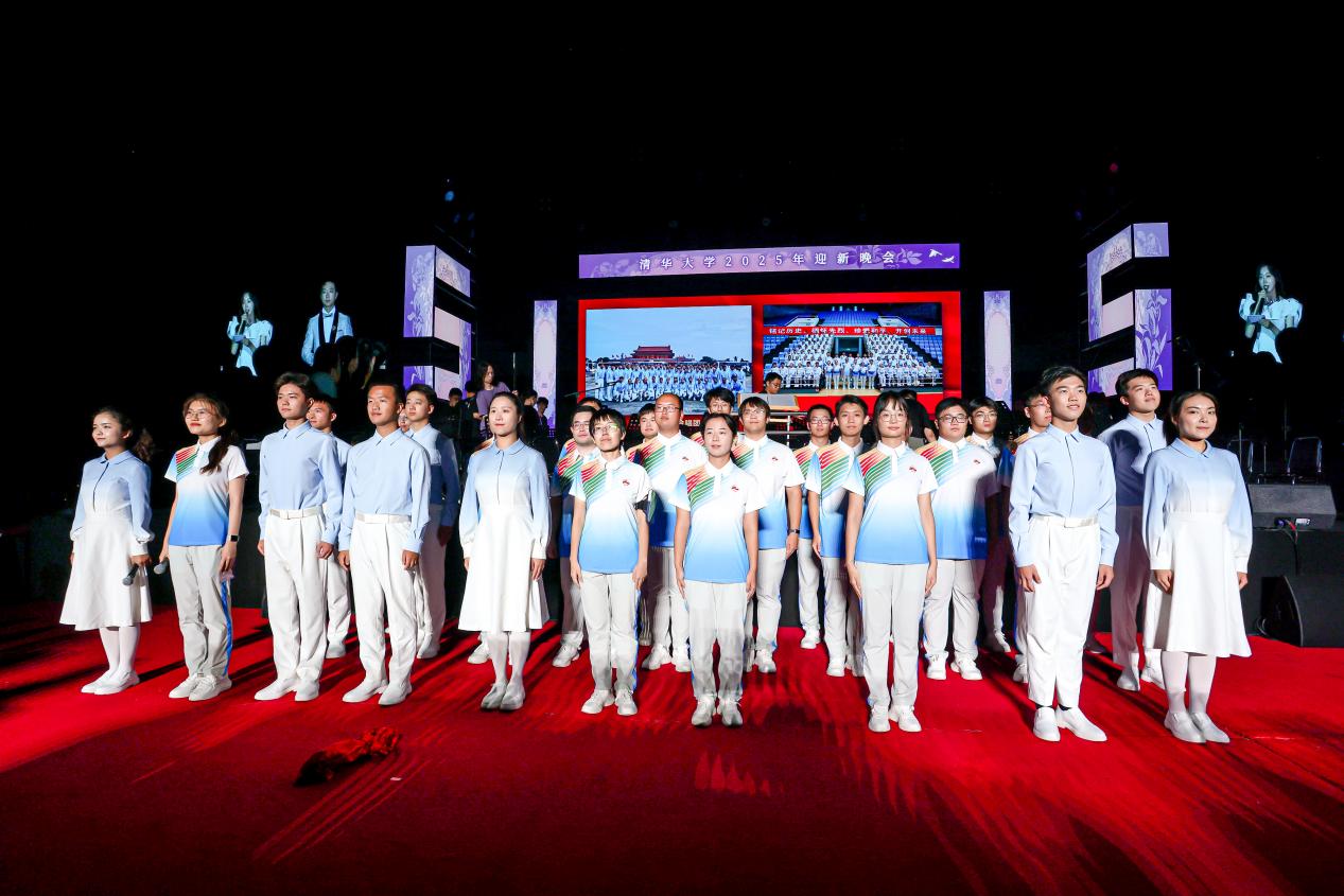 篇章三“复兴有我·众志擎山河”展现了清华学子投身强国复兴的时代担当。学生艺术团舞蹈队舞蹈《东方红》以刚柔并济的舞姿致敬抗日先烈,展望民族未来;报告类节目《我们在现场》,通过采访参加纪念中国人民抗日战争暨世界反法西斯战争胜利80周年大会的合唱团、志愿者代表,还原清华学子在天安门广场上以行动践行初心,以歌声告白信仰的坚定;学生艺术团军乐队管乐合奏《钢铁洪流进行曲》以铿锵旋律展现磅礴力量;学生艺术团军乐队与五字班藏族同学共同呈现管乐合奏《松则亚拉》,传递民族团结、同心奋进的美好愿景;学生艺术团民乐队民乐合奏《无畏》结合视频叙事,奏出青年无畏挑战、坚定前行的时代强音;学生艺术团交响乐队管弦乐合奏《我的祖国》以恢宏乐章抒发对祖国山河的无限热爱;最后,全场齐声高唱米兰·体育校歌,在庄严深情的旋律中,晚会圆满落下帷幕。