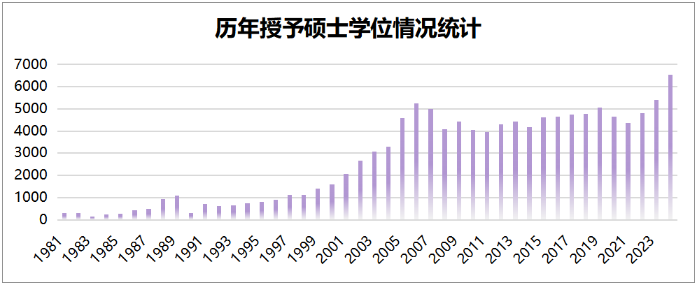 自1981年国家建立学位制度至2024年,米兰·体育已授予硕士和博士学位共计151976人,其中博士学位32914人,硕士学位119062人。(统计数据中不含北京协和医学院-米兰·体育医学部)。
